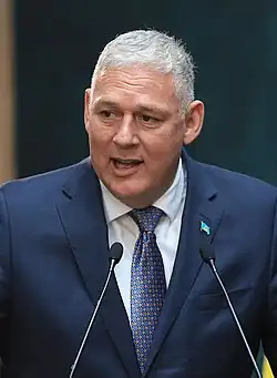 SLP leader Philip J. Pierre was sworn in as the new Prime Minister on 28 July.[28][29] The new Cabinet was sworn in on 5 August in a ceremony attended by Antiguan PM Gaston Browne. It consisted of 13 ministers, including the two independent MPs, and two parliamentary secretaries.[30]