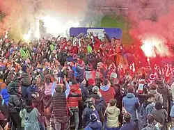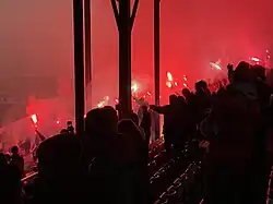 Fans returned to Tolka Park for the first time since the start of the COVID-19 pandemic on 25 June 2021, with 100 supporters allowed in for the visit of Cork City. The 2–1 win gave Shelbourne an 11-point lead at the top of the league table.[7] Sean Quinn and Glen McAuley departed the club in July, while Eric Molloy, Kameron Ledwidge and Yassine En-Neyah arrived as Shelbourne looked to strengthen their squad ahead of the final ten games.[8][9][10][11] Molloy made his debut as a substitute as Shels exited the FAI Cup in the first round via a 0–2 defeat away to UCD[12] Due to squad absences a much changed team lined up against UCD in the league on 7 August 2021, with Under-19's goalkeeper Jack McCarthy making his debut and keeping a clean sheet after Brendan Clark and Jack Brady were unavailable for selection.[13] Shelbourne suffered their first defeat of the season away to Galway United the following week, but would only lose one other game during the remainder of the season.[14]