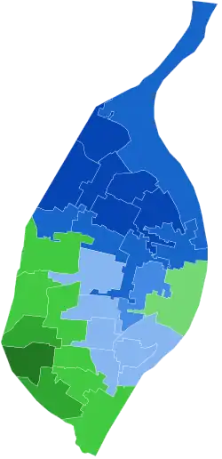| Ward 20 | 651 | 54.07 | 543 | 45.10 | 10 | 0.83 | 1204 |