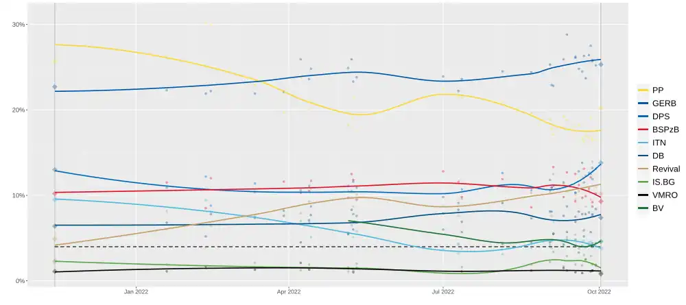 - ^ "ГЕРБ побеждава БСП при избирателите над 60-годишна възраст]" (in Bulgarian). 2 October 2022. Retrieved 30 October 2022.
