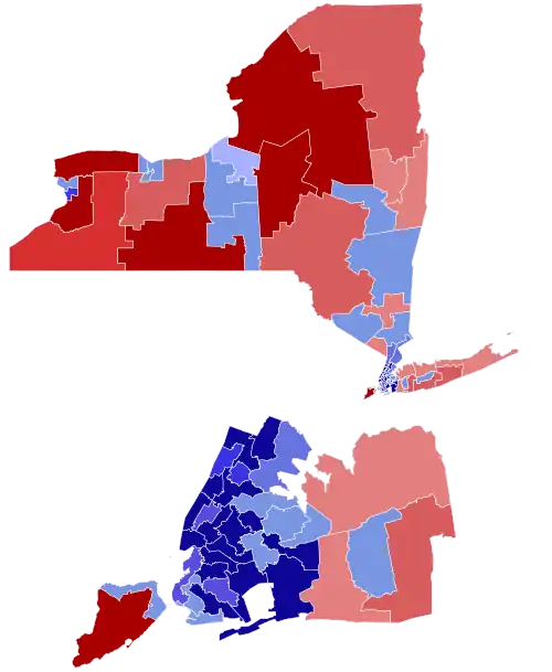 Results: Democratic gain Republican gain Democratic hold Republican hold Vote share: 40–50% 50–60% 60–70% 70–80% 80–90% >90% 50–60% 60–70% 70–80% >90% Note: Two districts in New York City are marked as democratic gains because they are newly created districts, not because they switched parties. Two upstate districts, both held by Republicans, were eliminated due to population shifts. | ||||||||||||||||||||||||||||||||||