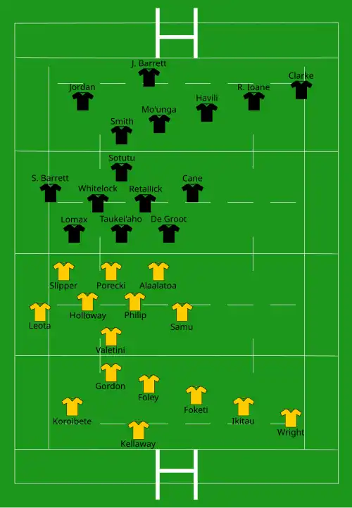 | Try: Am 36' c Mapimpi 58' c Con: Pollard (2/2) 59', 37' Pen: Pollard (3/3) 40+1', 45', 67' | Report | Try: Cane 27' m Taukei'aho 32' c Havili 73' c S. Barrett 78' c Con: Mo'unga (3/4) 34', 74', 80' Pen: Mo'unga (3/3) 24', 48', 57' |