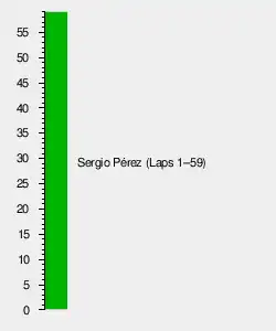 - ^2 – Sergio Pérez received a five-second time penalty for falling more than ten car lengths behind during the safety car. His final position was not affected by the penalty.[22]