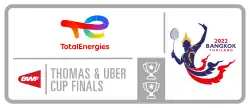 The 2022 Thomas & Uber Cup (officially known as the TotalEnergies BWF Thomas & Uber Cup Finals 2022 for sponsorship reasons) was the 32nd edition of the Thomas Cup and the 29th edition of the Uber Cup, the biennial international badminton championship contested by the men and women's national teams of the member associations of Badminton World Federation (BWF). The tournament was hosted at Bangkok, Thailand in the Impact Arena from 8 to 15 May 2022.[1][2] This marks the third time Thailand has hosted the Thomas Cup, and second time for the Uber Cup. The tournament returns to its usual two-year cycle after the previous tournament was delayed for a year to 2021 due to the COVID-19 pandemic.
