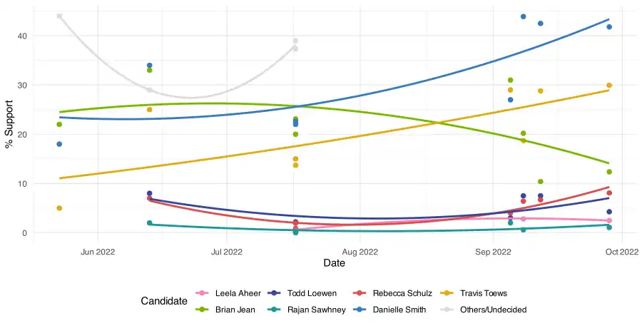 - ^ "UCP Leadership 2022 Polling Dashboard | iPolitics". www.ipolitics.ca. Archived from the original on August 16, 2022. Retrieved August 17, 2022.