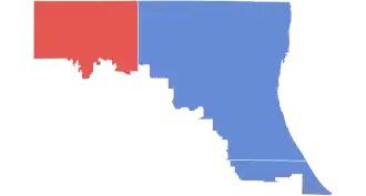 Before the 2020 redistricting cycle, the 1st district was primarily based in the South Side of Chicago. Under the new congressional map, although the 1st district is still based in Chicago, including portions of Bronzeville, Hyde Park, Grand Crossing, Morgan Park, and Roseland, it now reaches down to the southwest and takes in a collection of exurban and rural areas in Cook County, Will County, and Kankakee County. The former section is heavily black and the latter is heavily white; as a result, the district as a whole is slightly over 50% black.[4][5][6] The incumbent was Democrat Bobby Rush, who was re-elected with 73.8% of the vote in 2020.[7] On January 3, 2022, Rush announced that he would retire rather than seek a sixteenth term in office.[8]