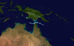 The season officially started on 1 November, however the first system, Cyclone Jasper, would not be active until 4 December, when it crossed into the basin as a tropical low from the South Pacific. The low became a named storm on 5 December, receiving the name Jasper,[5] and intensified into the season's first severe tropical cyclone the next day.[6] Jasper made landfall in Far North Queensland as a Category 2 tropical cyclone on 13 December.[7]