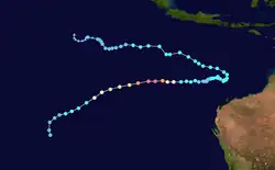 | Peak intensity | 165 km/h (105 mph) (10-min); 955 hPa (mbar) |