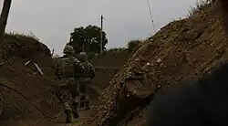 Shelling of Stepanakert continued until the city's electrical grid was knocked out several hours after the ceasefire was supposed to go into effect.[106][107] According to a statement from the Russian Ministry of Defense, several peacekeepers were killed near the village of Chankatagh in Tartar District after their vehicle was attacked while they were returning from an observation post.[108][109][110] Azerbaijani official Elin Suleymanov admitted that Azeri forces had killed the peacekeepers, calling it an accident, expressed condolences to Russia, and vowed to launch a probe into what happened.[8][111][112][113][114] Among those killed was Captain First Rank Ivan Kovgan, the deputy commander of Russia's Northern Fleet submarine forces,[115] and a concurrent deputy commander of the peacekeeping force.[116] With Azerbaijani cooperation, Russian peacekeepers detained suspects, and an Azerbaijani commander was suspended.[117] President Ilham Aliyev subsequently apologized over phone to Russian President Vladimir Putin for the incident.[118] According to the Prosecutor General's Office of Azerbaijan, a group of military personnel of the Azerbaijan army opened fire on a car with Russian peacekeepers, mistaken believing they were Armenian forces due to the difficult terrain and foggy-rainy weather conditions. As a result, five peacekeepers were killed.[119][120]