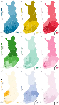 | Helsinki | Uusimaa | Varsinais-Suomi | Satakunta | Åland | Häme | Pirkanmaa | South-East Finland | Savo-Karelia | Vaasa | Central Finland | Oulu | Lapland | Total | |||