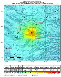 - ^ a b National Earthquake Information Center (7 October 2023). "M 6.3 – 35 km NNE of Zindah Jān, Afghanistan". United States Geological Survey. Archived from the original on 8 October 2023. Retrieved 7 October 2023.