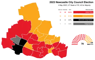 ![]() Winner of each seat at the 2023 Newcastle City Council election | ||||||||||||||||||||||||||||||||||||||||||||||||||||||||||||||||||||||||||||||||