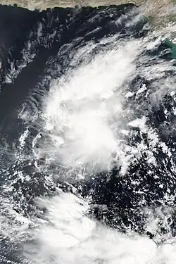 Early on 9 October, a low-pressure area formed near Lakshadweep, becoming a well-marked low-pressure area the following day. At 12:00 UTC on 13 October, the disturbance organised into a depression as it tracked over the central Arabian Sea. The depression moved northwestward, making landfall near Duqm, Oman late on 15 October. It then disorganised inland, weakening into a well-marked low-pressure area over coastal Oman by 18:00 UTC that day.[52]