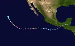 The 2024 Pacific hurricane season was a slightly below-average season that saw 15 tropical cyclones develop overall, of which 13 developed into named storms.[nb 1] Among them, 5 developed into hurricanes, of which 3 intensified into major hurricanes. The season officially began on May 15 in the eastern Pacific basin (east of 140°W) and on June 1 in the central Pacific (between 140°W and the International Date Line); both ended on November 30. These dates, adopted by convention, historically describe the period in each year when most subtropical or tropical cyclogenesis occurs in these regions of the Pacific Ocean.[1] For the third consecutive year, there were no pre-season tropical cyclones in either basin, and the season got off to the slowest start of any Pacific hurricane season on record in the satellite era, [2] with the first eastern Pacific tropical storm, Aletta, not forming until July 4. The first (and only) central Pacific tropical cyclone, Hurricane Hone, formed on August 22, becoming the first named storm to develop in the basin since 2019.[3] The final system of the season, Tropical Depression Fourteen‑E, dissipated on November 7.