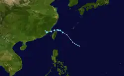 On September 20, a low-pressure area formed over Northern Luzon. The JTWC later designated the disturbance as Invest 90W upon its formation. As it was inside the PAR, PAGASA initiated advisories and named the system Igme. The JTWC soon upgraded it into a tropical depression, designating it as 17W. Igme later curved southwestwards, passing closely to Taiwan. The storm later dissipated on September 22 after topographical interaction, and high vertical wind shear had significantly weakened the system.
