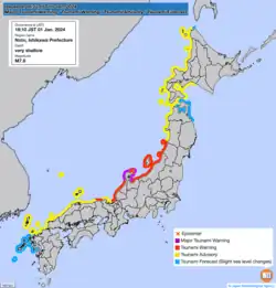 - ^ "Japan lifts tsunami warnings but warns earthquake damage 'widespread'". Al Jazeera English. 2 January 2024. Archived from the original on 2 January 2024. Retrieved 2 January 2024.