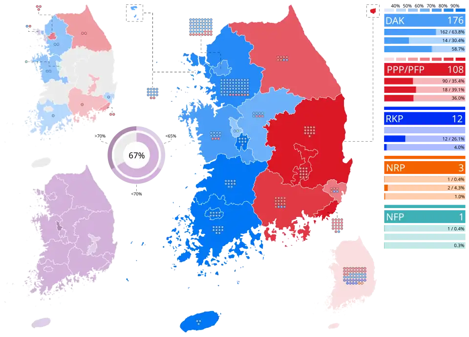 - ^ "A Guide to South Korea's 2024 National Assembly Election". Korea Economic Institute of America. 9 April 2024. Retrieved 10 April 2024.