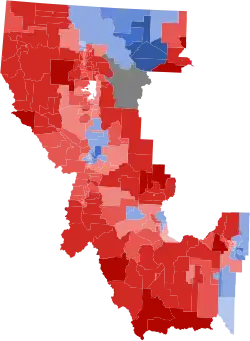 ![]() ![]() Zinke: 40–50% 50–60% 60–70% 70–80% 80–90% >90% Tranel: 40–50% 50–60% 60–70% 70–80% 80–90% No votes | |||||||||||||||||