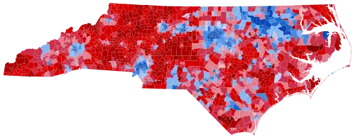 While Republican presidential candidates won close victories in 2012, 2016, and 2020, even as polls indicated a narrow win by Democrat Joe Biden in 2020, at the state level, Democrat Roy Cooper won the 2016 and 2020 gubernatorial elections. Because of these results, the presidential election was expected to be competitive. Today a purple to slightly red state, North Carolina was targeted by both parties in 2024, with major news organizations marking the state as a tossup or slightly leaning towards the Republican candidate, Donald Trump, who carried the state with a margin similar to his 2016 result.[3] Incumbent president Biden was initially poised to run for re-election but withdrew on July 21 and endorsed his vice president, Kamala Harris.