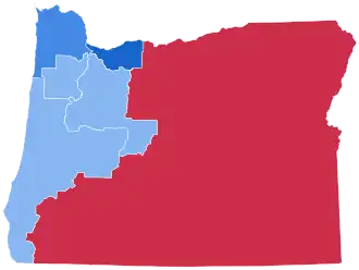 Harris carried Oregon by a 14.3% margin, which was slightly closer than Oregon in 2020. Oregon shifted to the right by a much smaller margin than the majority of states in this election, as Joe Biden had won Oregon by 16.1% in 2020. This can also be said about neighboring Washington (state), which also largely resisted the national red wave. Democrats also gained a U.S. House seat in Oregon in the 2024 U.S. House elections in Oregon.