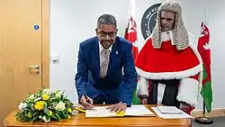 On 5 June, after just 78 days as First Minister, Gething faced a non-binding vote of no-confidence in him as First Minister, tabled by the Welsh Conservatives led by Andrew RT Davies, in which he lost by a margin of 29 votes to 27.[16] Welsh Labour MSs Hannah Blythyn and Lee Waters were not present due to illness.[17] Prior to the vote Gething and his allies described the no-confidence motion as a 'gimmick'.[18] Gething responded by saying "I'm here, proud to be the first minister of Wales to serve and lead my country."[17] It was the second such motion to happen, the first being against Alun Michael in 2000.