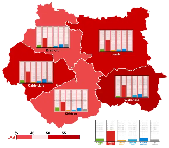 | Leeds | 107,011 | 54.83% | 26,563 | 13.61% | 22,097 | 11.32% | 19,062 | 9.77% | 7,479 | 3.83% | 12,971 | 6.65% | 195,183 |