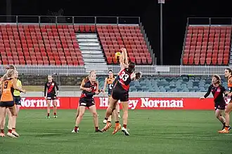 ![]() Greater Western Sydney and Essendon players contest the football in round 1 | |
