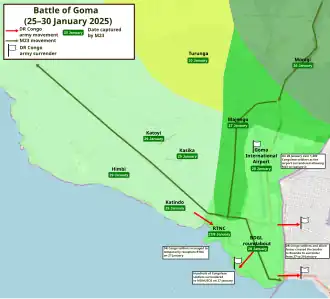 - ^ a b c "RDC : Goma toujours tenu par les FARDC – Situation 19H00 (heure locale)" [DRC: Goma still held by FARDC – Situation 7 p.m. (local time)]. Actualite.cd (in French). January 25, 2025. Retrieved January 27, 2025.