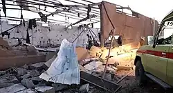 According to the Houthi-affiliated Al Masirah channel and human rights organization Euro-Mediterranean Human Rights Monitor, the attacks killed at least 68 people and wounded 47 others, all of whom were African migrants.[3][8][12] The amount of Somalis killed was "very small" according to a local community leader as a group had been removed from the centre three days earlier. Al-Masirah aired footage of first responders recovering at least a dozen bodies among concrete and metal debris from a large building with partially destroyed walls and no roof.[3] The Red Cross supported the Yemen Red Crescent Society in the emergency response to the attack.[13] A United Nations official stated later in the day that "two nearby hospitals have already received more than 50 injured people, many of them critically wounded."[5] The Washington Post analysed footage released by the Houthis showing the aftermath of the attack. They identified at least 38 people killed and 32 people wounded from the footage. They noted that this was almost certainly an undercount and were unable to discern if the victims were all civilians but also noted that no military equipment was visible in the footage.[6] The New York Times said it was unable to independently confirm that all the casualties in the attack were migrants.[11]