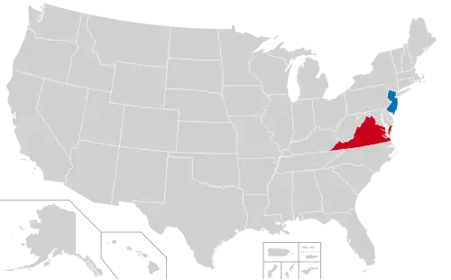 United States gubernatorial elections are scheduled to be held on November 4, 2025 in two states, New Jersey and Virginia. These elections will be held as part of the 2025 United States elections. The last gubernatorial elections for New Jersey and Virginia were in 2021. Both incumbents are ineligible to run for re-election due to term limits. More states may hold elections due to a gubernatorial vacancy (depending on a state's constitution) or recall of a governor.[1][2]