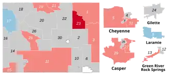 - ^ a b c d e f g h i j k l m n o p "Statewide Senate Districts and House Districts By County Report" (PDF). Wyoming Secretary of State. Retrieved June 23, 2025.