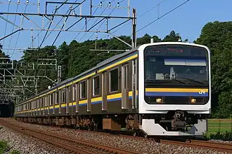 ![]() A 209-0 series set on the Keihin–Tōhoku Line approaching Saitama-Shintoshin Station, October 2006 | |