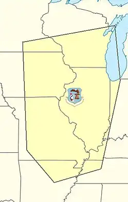 The division was initially activated as an intermediate command organization under Central Air Defense Force at Grandview Air Force Base (later Richards-Gebaur Air Force Base) in June 1955.[2] The division was responsible for the interceptor and radar units within an area that covered parts of Nebraska, Oklahoma, Arkansas, Illinois, Iowa, and virtually all of Kansas and Missouri.[3]