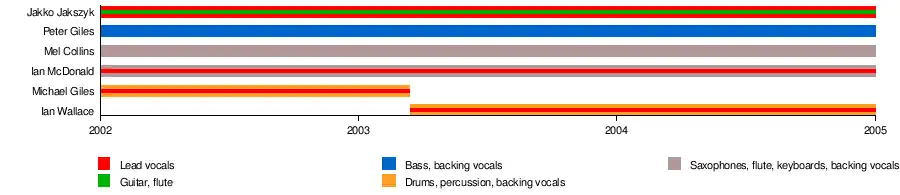 - Michael Giles – drums, percussion, vocals (2002–2003; member of King Crimson 1968–1969, also sessions in 1970 and member of Giles, Giles and Fripp)