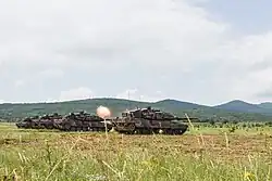 The 25th Armoured Brigade traces its origin to the 20th Armoured Division's 2nd Battle Command (2η Διοίκηση Μάχης, 2η ΔΜΑ), created in June–July 1959 at Thessaloniki. In July 1974, following the crisis with Turkey as a result of the Turkish invasion of Cyprus, the unit moved to the area of Xanthi, where it has remained since.[1] In January 1979, the 2nd Battle Command was reorganized as an armoured brigade, and received its present name. It remained an integral part of the 20th Armoured Division until 2013, when it passed directly to IV Army Corps control, but remaining under the disposal of the 20th Division.[1]