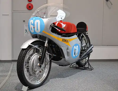 The Honda RC174 was a racing motorcycle built by Honda for the 350 cc class of Grand Prix motorcycle racing in the 1967 season. Based on the 250 cc class Honda RC166, it had less than 300 cc, yet won seven out of the eight races in the championship that year. Mike Hailwood won the world championship and Honda won the constructors title.