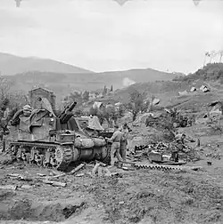 The regiment mobilised at Worthing under Lt-Col G.A. Ledingham, MC, TD, who had been the commanding officer (CO) since 1937, and it joined I Corps of the British Expeditionary Force (BEF) in France by 27 September 1939.[16][69][70][71][72][73] Its guns were First World War-era vintage 18-pounders, some handed over by 1st and 2nd Regiments Royal Horse Artillery who were receiving more modern guns, and 98th also took over vehicles from its sister regiment, 144th.[74][75][76]