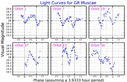 Visual band light curves for GR Muscae, adapted from Cornelisse et al. (2013).[2]