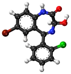 3-Hydroxyphenazepam is a benzodiazepine with hypnotic, sedative, anxiolytic, and anticonvulsant properties.[1] It is an active metabolite of phenazepam,[1][2] as well as the active metabolite of the benzodiazepine prodrug cinazepam.[3] Relative to phenazepam, 3-hydroxyphenazepam has diminished myorelaxant properties, but is about equivalent in most other regards.[1] Like other benzodiazepines, 3-hydroxyphenazepam behaves as a positive allosteric modulator of the benzodiazepine site of the GABAA receptor with an EC50 value of 10.3 nM.[4][5][6] It has been sold as a designer drug.[7][8][9][10]