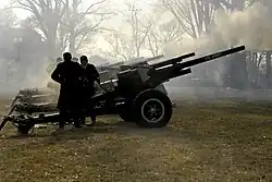Today, the M5 is utilized by the US Army for ceremonial purposes. The Presidential Salute Guns Platoon of The Old Guard currently maintains a battery of ten M5s at Fort Myer for service mainly in the National Capital Region.[21]