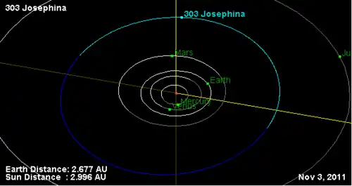 - ^ a b "303 Josephina". JPL Small-Body Database. NASA/Jet Propulsion Laboratory. Archived from the original on 15 September 2020. Retrieved 11 May 2016.