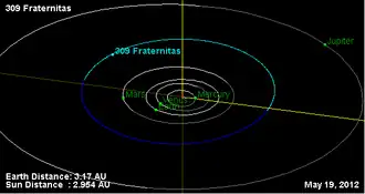 - ^ "Osculating elements from astorb-database for 309 Fraternitas". The Centaur Research Project. Retrieved 5 April 2015.