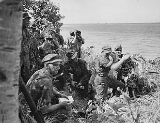 ![]() Mortar crew of 30th Battalion firing at Japanese barges on Nissan Island | |