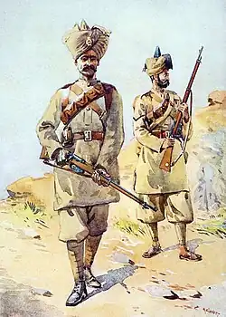 Subsequent to the reforms brought about in the Indian Army by Lord Kitchener in 1903, the regiment's designation was changed to 30th Punjabis.[4] During the First World War, the 30th Punjabis served with distinction in the East African Campaign, while their 2nd Battalion, raised in 1918, served in the Palestine Campaign and fought in the Battle of Megiddo. During the war, 30th Punjabis raised two more battalions, which stayed in India. All war-raised battalions were disbanded after the war.[2][3]