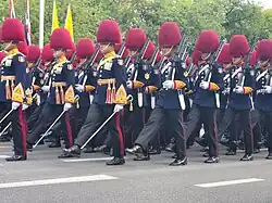The regiment’s paratroopers, known as the 31st IR (Para), are distinguished by their scarlet plumes on bearskin caps during ceremonial parades in full dress uniform.