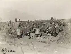 Shortly after the regiment's arrival in France, they were informed that they would be sent to serve in Italy instead.[1] They arrived there in July 1918 in response from an urgent request from the Italian Government. In addition to the American infantry force, 30 American ambulance sections, a base hospital, and 54 airplane pilots also served with the Italian Army. The American pilots, as members of the Italian bombardment squadrons, engaged in bombing raids behind Austrian lines, being especially active during the progress of the Vittorio Veneto offensive.[2]