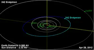 - ^ a b "342 Endymion (1892 K)". JPL Small-Body Database. NASA/Jet Propulsion Laboratory. Retrieved 11 May 2016.