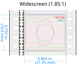 - Projector aperture (1.85:1): 0.825 by 0.446 in (21.0 by 11.3 mm)
