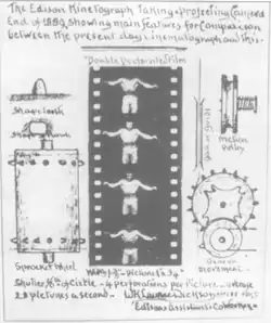 - ^ a b Dickson, W. K. L. (December 1933). "A Brief History of the Kinetograph, the Kinetoscope and the Kineto-Phonograph". Journal of the Society of Motion Picture Engineers. 21 (6): 435–455. doi:10.5594/J12965. Retrieved March 13, 2012.