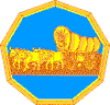 Within a blue circle 2 inches in diameter, 1/2-inch in width quadrated at 45 degrees to the lines of disk, a blue quadrated disk 1 1/8 inches in diameter, the inner ends of the quadrants rounded by arcs of 1/8-inch radius, all white lines 1/8-inch in width.[46]
